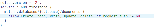 It interoperates with firebase authentication, so that you can write this rule to only let