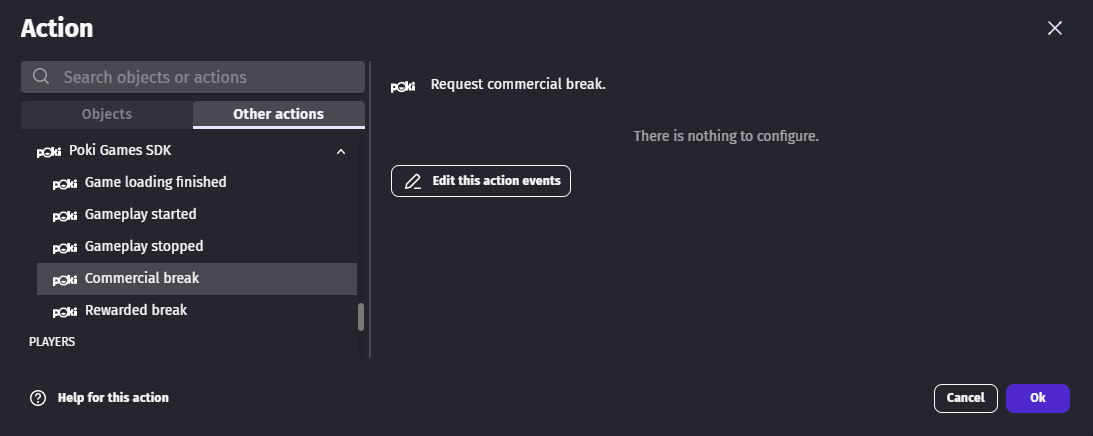 Ads can be displayed using either the Commercial break or Rewarded break actions. Please refer to Poki's implementation details to understand when to use one or the other.