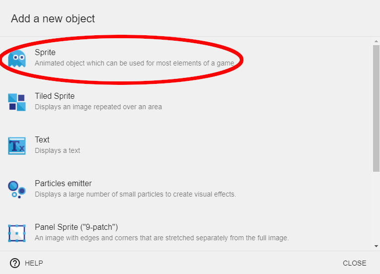 Choose Sprite from the Add a new object pop-up. This will be followed by the appearance of a dialog box.