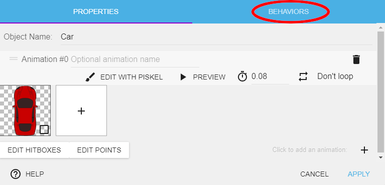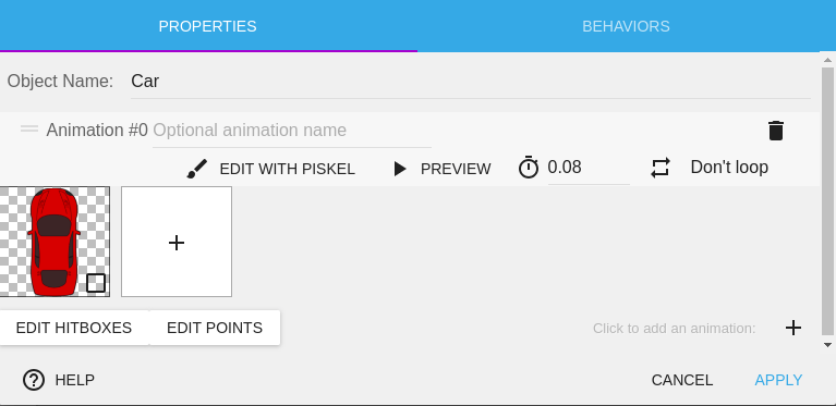 Add the image named 'car.png' as animation and click on the APPLY option.