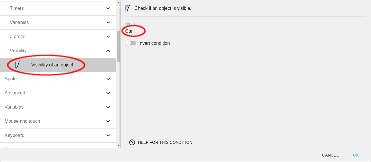 Our first event will include a condition that checks if the X position of the Car is less than 60 px.